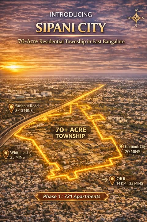 Sipani City is a promising investment option for homebuyers and investors looking for long-term value in East Bangalore. Located off Sarjapur Road, the project benefits from fast infrastructure growth, strong demand from IT professionals, and a well-planned township layout. With a reputed developer, large land parcel, high open space, and future-ready planning, Sipani City offers good potential for price appreciation and rental demand. The phased development approach and growing social infrastructure around the project further add to its investment strength.